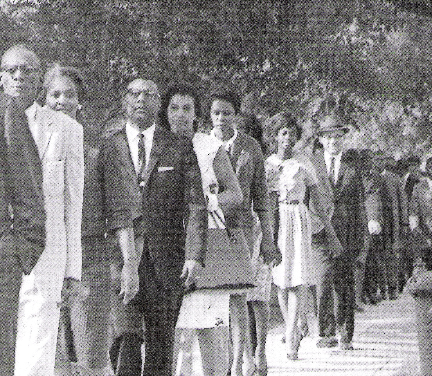 Elease the wife of Dr. Thomas (2nd from the front) joins him and follows members of the clergy in a protest march on downtown Orangeburg