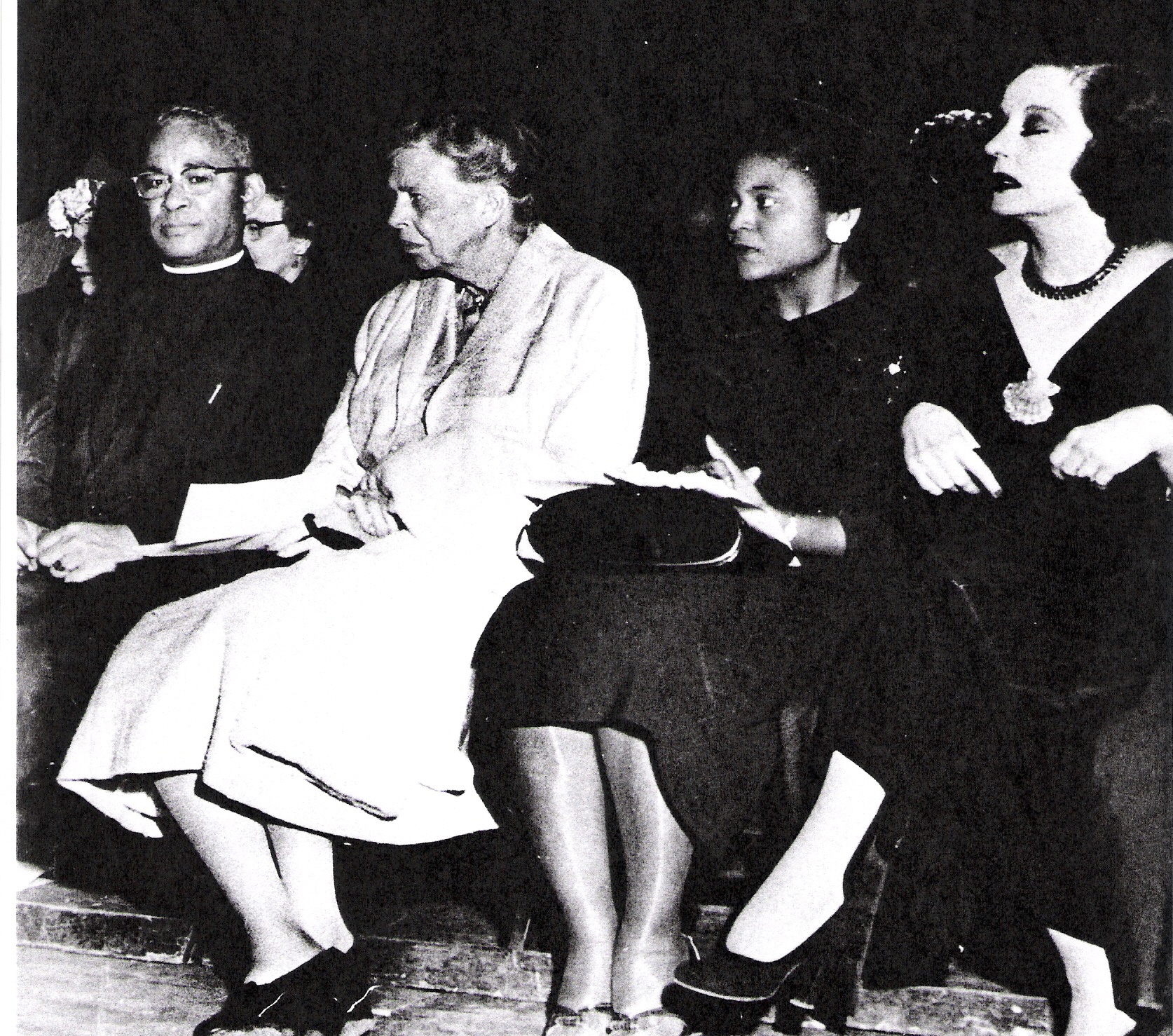 First Lady Eleanor Roosevelt and actress Tulalah Bankhead attend a rally in New York City in support of Rev. DeLaine seated on the left.