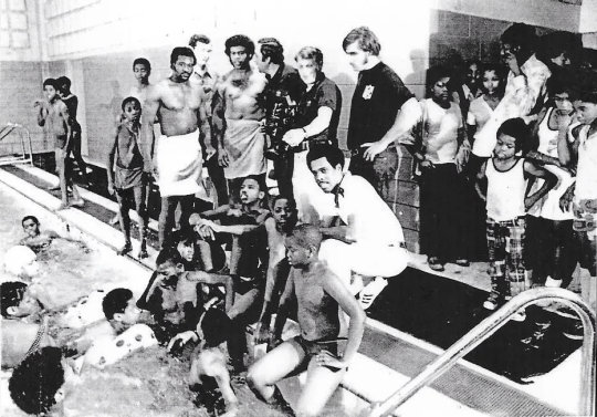 The first ever NFL community promo: NFL Films at the Hillcrest Saturday Program as Washington Redskin players Larry Brown and Harold McLinton teach water safety to neighborhood children.