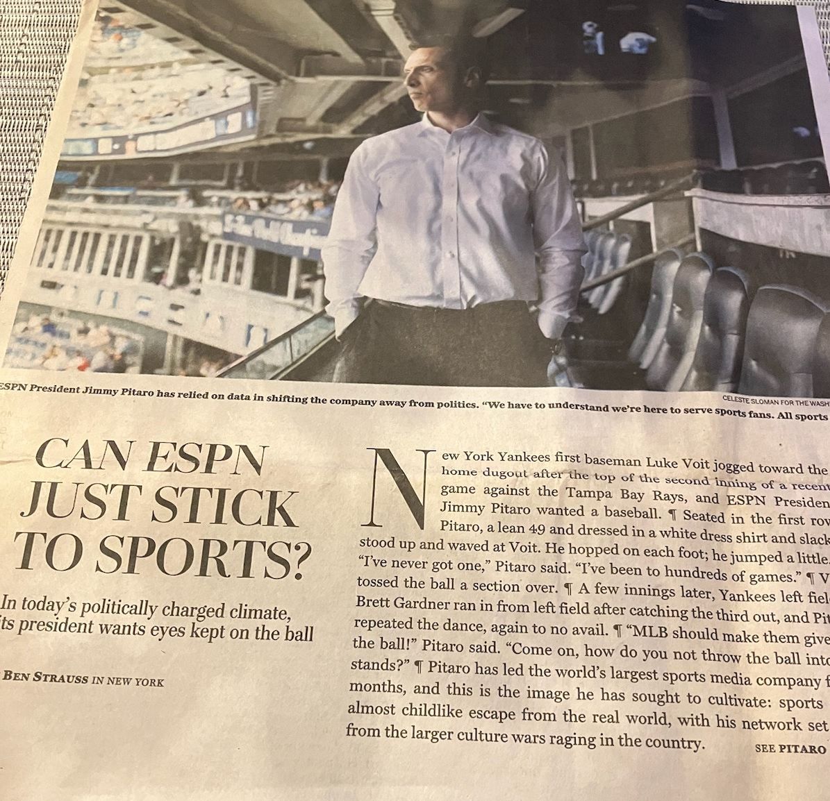 ESPN claims to be the world-wide leader but new boss says, “No more politics can be discussed on the ESPN sports format!”
