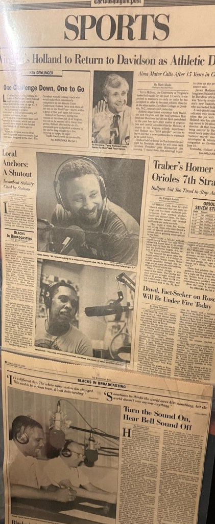 I was the first black media personality recognized as a “TRAILBLAZER” by radio and TV critic, William Taaffe of the Washington Star (1978). In an unheard-of first, I was the first black sports media personality ever spotlighted in lead stories in the Washington Post, on pages ONE & THREE (June 1989). The title of the stories, “Local Anchors: A Shut Out and Turn the Sound On, Hear Bell Sound Off”. No issues were off-limits when it came to children. My work with youth in the DMV is legendary–thanks to Red, Sam, KC and other pro athletes. Their support was immeasurable.
