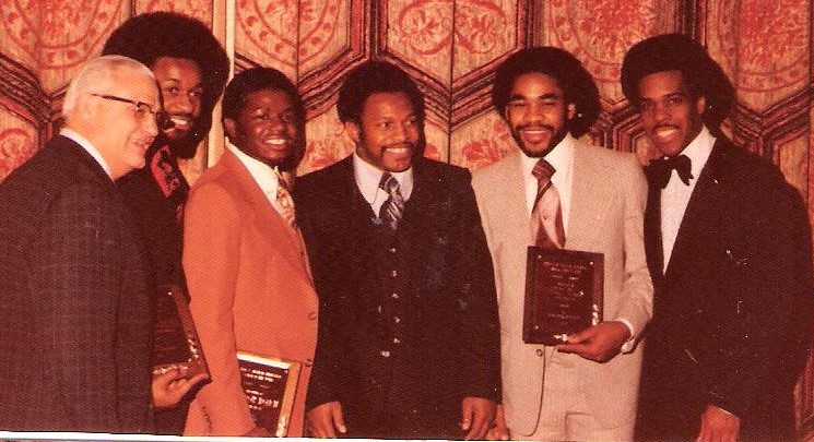 OHIO STATE: COACH WOODY HAYNES-QB CORNELIUS GREENE-RB WOODROW ROACH-RB ARCHIE GRIFFIN-RB LENNY WILLIS AND HBELL. TRIBUTE AT THE SHORHAM HOTEL IN WASHINGTON, DC.