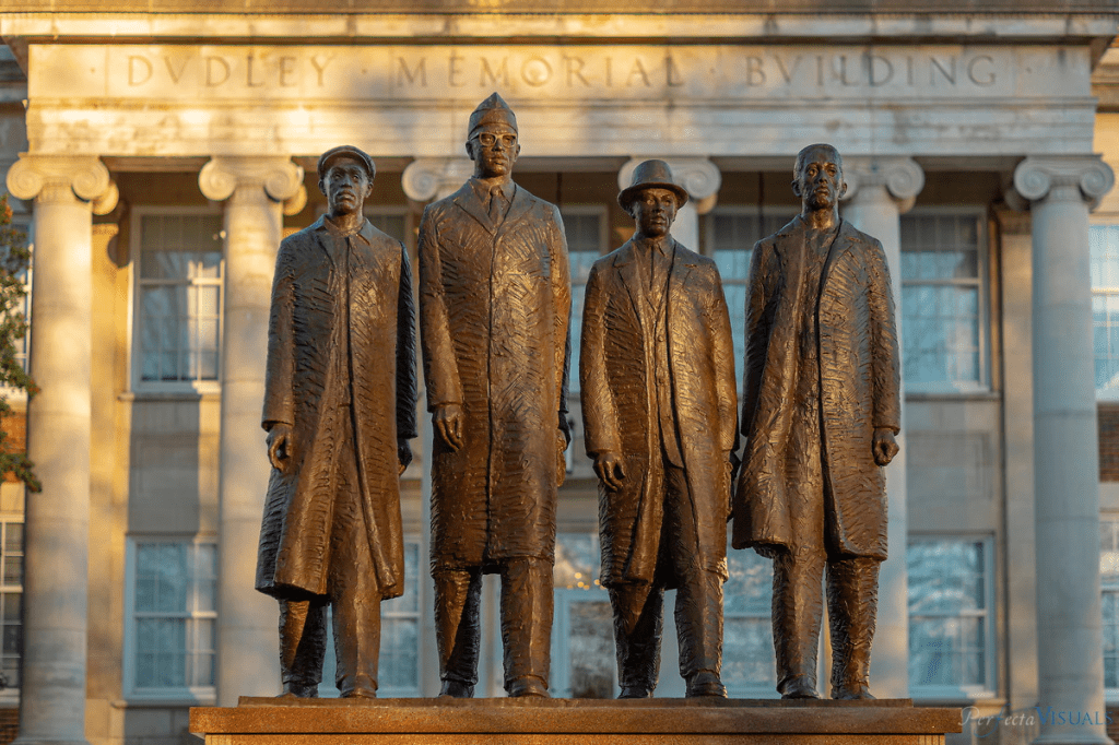 THE GREENSBORO 4-IMMORTALIZED ON THE CAMPUS OF NORTH CAROLINA A & T (1960). TWO SURVIVORS.