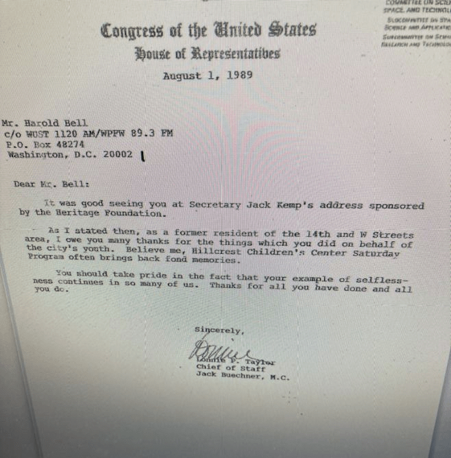 Lonnie Taylor is one of my proudest moments in regards to the Hillcrest Saturday Program’s tutorial program. He later became the first Black American Chief of staff for a white Congressman on Capitol Hill (see letter).