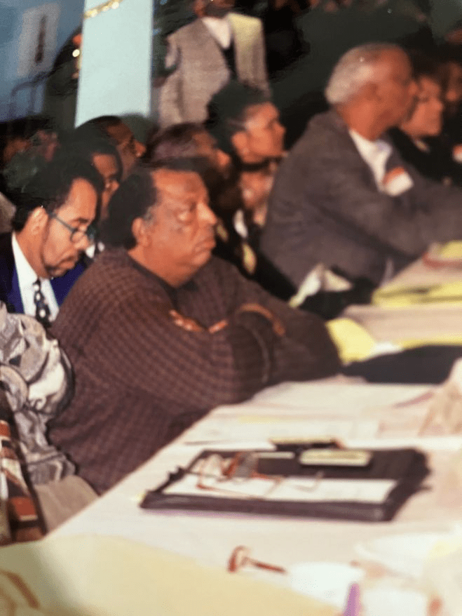 Participants in the Kids In Trouble Youth Violence forum at Bible Way Baptist Church in NW DC. The late Jim Brown (NFL) and Congressman Tom Davis (R-Vir) were the co-host. Butch McAdams is seen sitting in the audience taking notes behind the late Mayor of U Street, Carton Snipes.