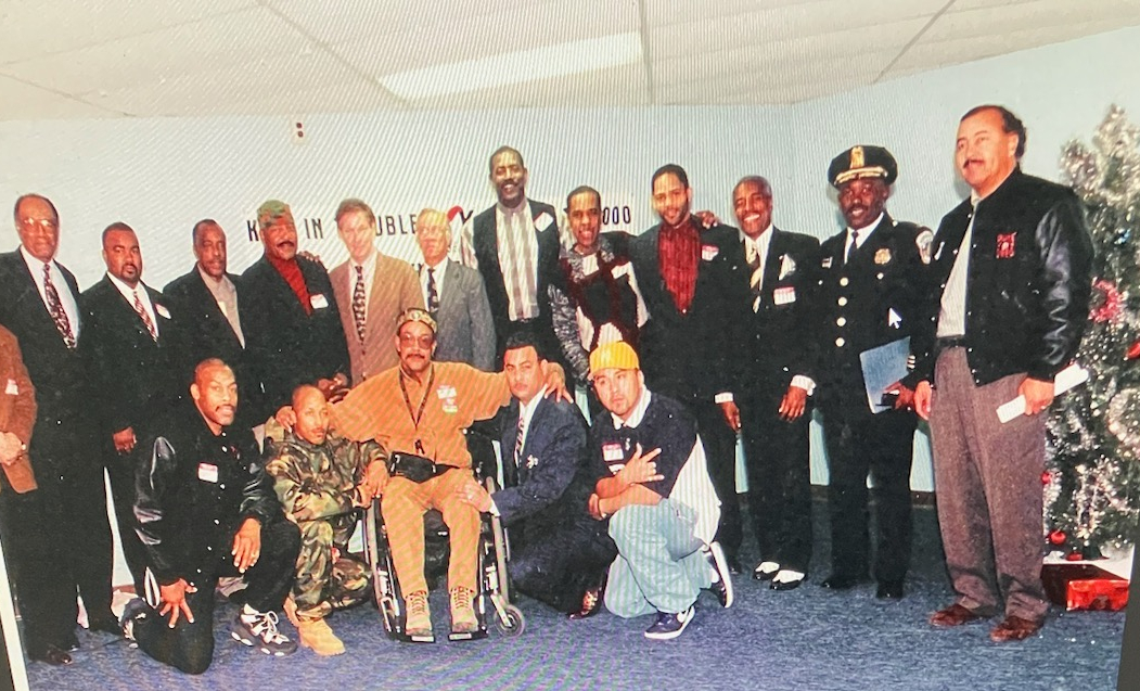 The late Sam Jordan became the Director of Emergency Management for the DC government. He is seen standing next to NFL legend Jim Brown during a KIT Police Youth Gang Forum at Bible Way Churh in NW DC.