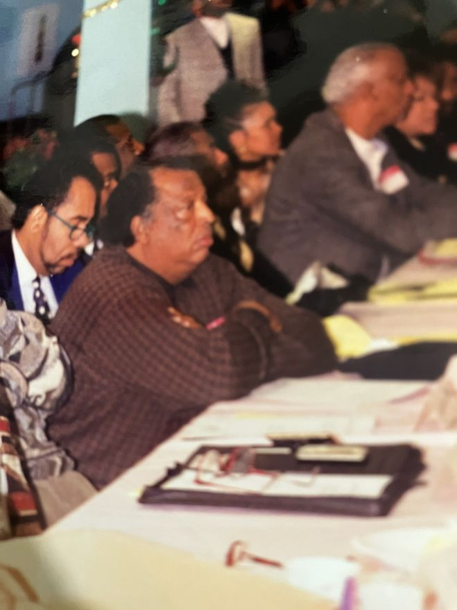 Butch is seen sitting behind the late Mayor of U Street John Snipes taking notes at the forum.