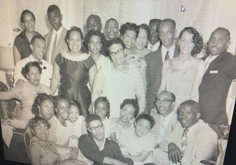 Birds of a feather flock together-THE JAMES FAMILY TREE hanging out at club 1204 in Eastland Gardens. Family matriarch, “Uncle Billy” (glasses) kneeling next to New York cousin, Frankie.