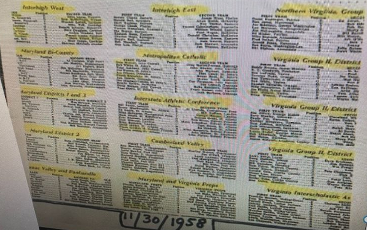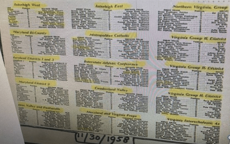 Selected to the 1958 First Team All-Star East Football Team for the DC Public High Schools