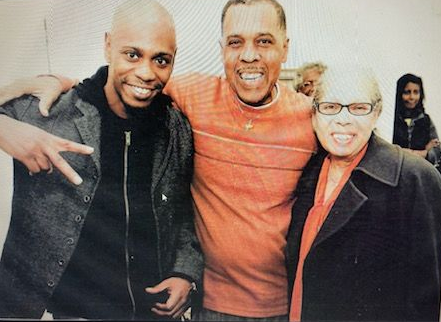 Dave Chappelle and his mother, Yvonne during a tribute to comedian Dick Gregory.
