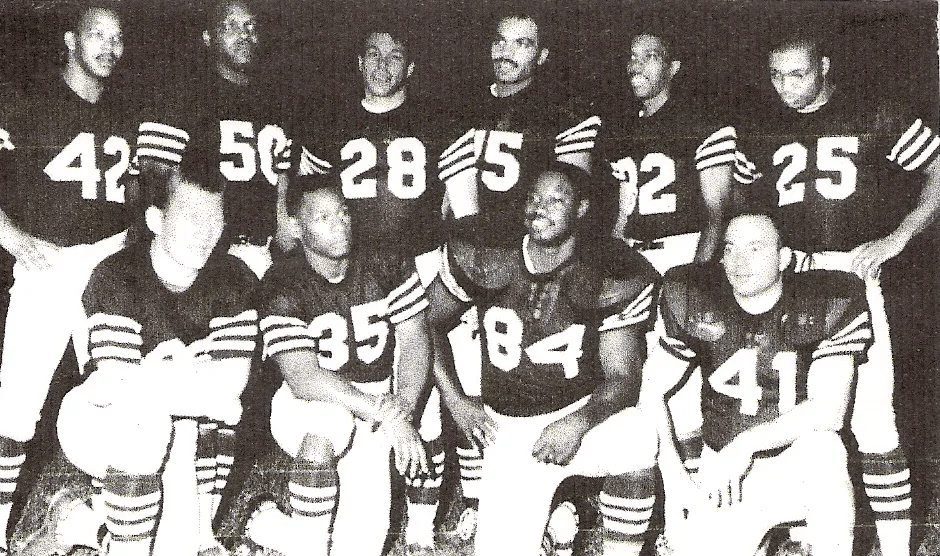 This is a photo of players from DC trying out for the Virginia Sailors. Norris ‘Brute’ Little No. 25 standing on the right and I am standing next to him No. 82.