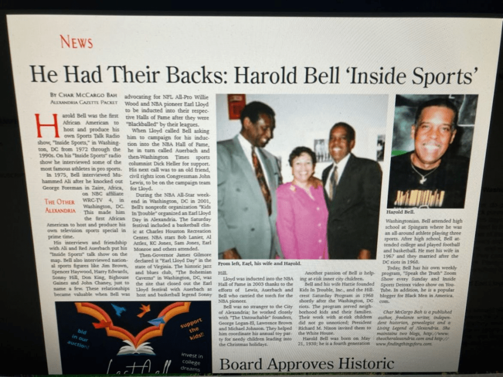 Lloyd was inducted into the NBA Hall of Fame in 2003, thanks to the team of, Red Auerbach, Sports Columnist, Dick Heller, Congressman John Lewis and ‘Trouble Maker’, Harold Bell!