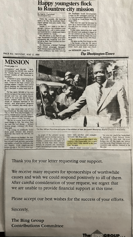 Rev. Dr. William Roundtree was my Spingarn High School Coach in the DC Public School system. He also coached NBA Hall of Fame player and Mayor of Detroit, Dave Bing.