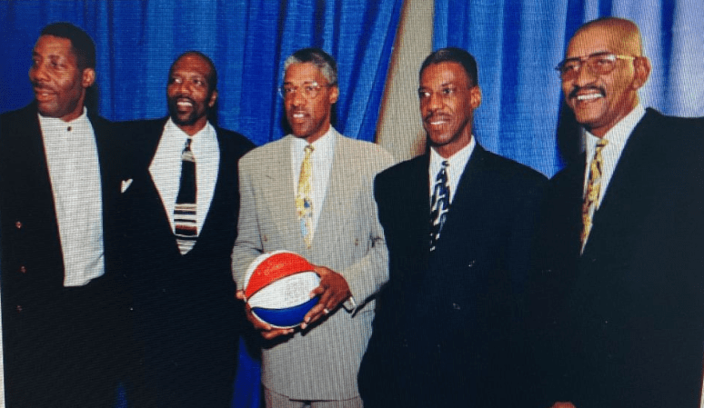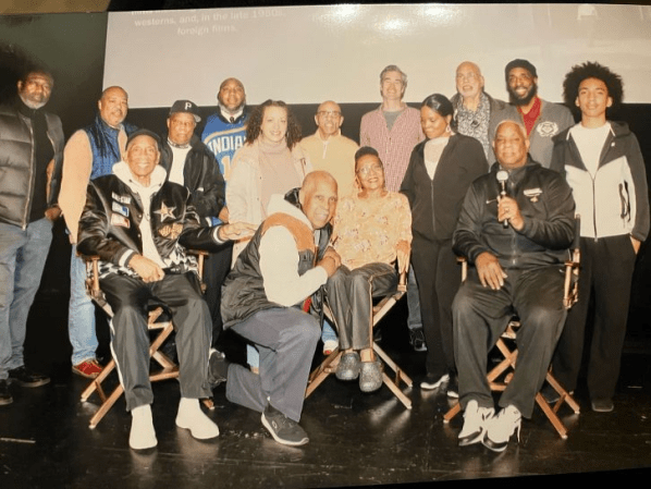 Freddy Lewis is surrounded by ABA legend Colis Jones, and DC playground basketball legends, John ‘Bay-Bay’ Duren, and Stacy Robinson. The occasion, the screening of the documentary, “The Waiting Game.” The story of the basketball wars between the NBA and ABA in the 60s and 70s.