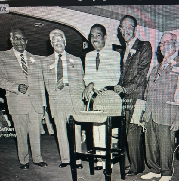 L-R COACH WILLIAM ROUNDTREE-OFFICER RAY DIXON–HB–BING-PRINCIPAL PURVIS WILLIAMS