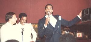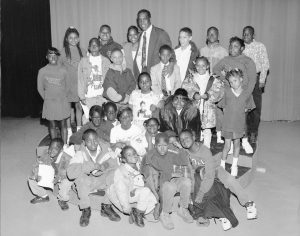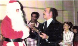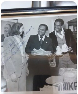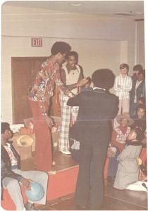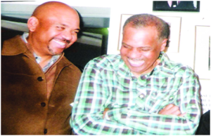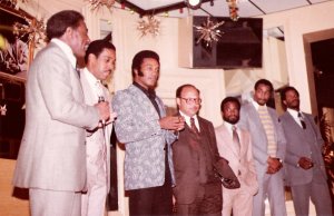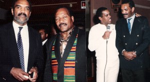 The late comedian Dick Gregory shares a laugh with comedian Ernie Fields and his partner Cockroach the dummy. I turned to them to assist me with the entertainment part of the program and they came through with flying colors.