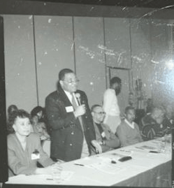 KIT Police/Community Youth Forum at the Grand Hyatt in downtown DC. The Montgomery County Police Department’s first Black Police Chief, Clarence Edwards was a guest panelist (before his appointment). The Clerk of the Prince George County Court is seated on Edwards’ right, Rev. John Edwards on his left, and standing in a white sweater, Kojo Nnamdi WHUR TV/WAMU Raio were the other panel members that participated along with Washington Redskin LB, Carl Banks.