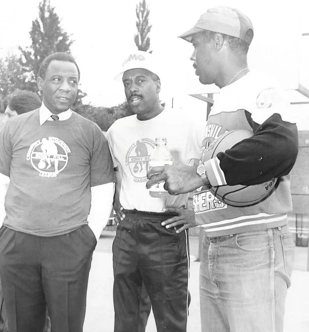 I am in Philadelphia with Mayor Wilson Goode and my mentor, playground basketball legend Sonny Hill. Goode was the city’s first Black Mayor. We were on a tour of playgrounds in the city of brotherly love.