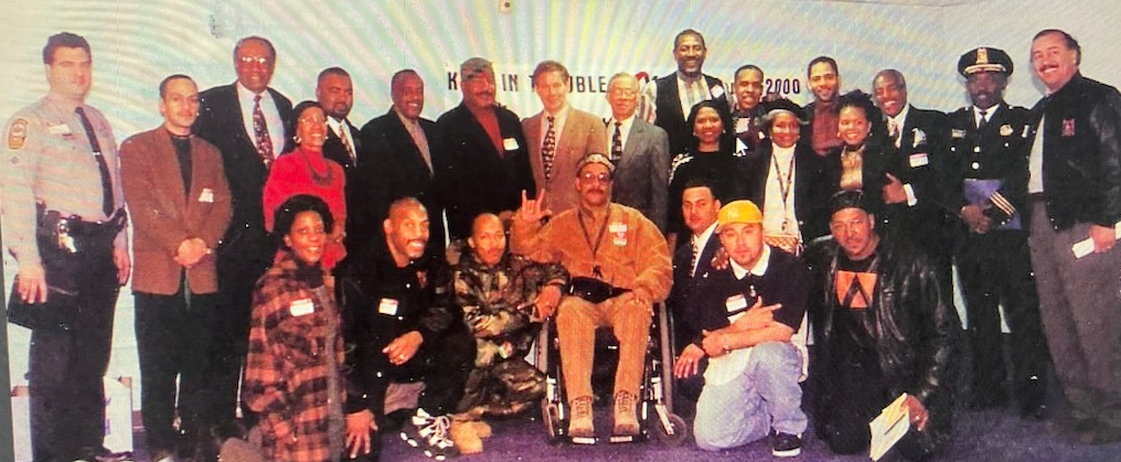 Participants in the Kids In Trouble Youth Violence forum at Bible Way Baptist Church in NW DC. The late Jim Brown (NFL) and Congressman Tom Davis (R-Vir) were the co-host. Butch McAdams is seen sitting in the audience taking notes behind the late Mayor of U Street, Carton Snipes.